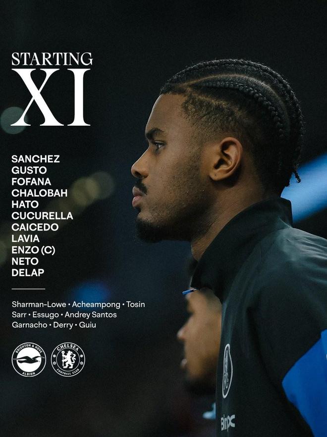 切尔西首发:1-罗伯特-桑切斯、27-古斯托、29-韦斯利-福法纳、23-特雷沃-查洛巴、21-哈托、3-库库雷利亚、25-莫伊塞斯-凯塞多、45-拉维亚、8-恩佐-费尔南德斯、7-佩德罗-内托、9-德拉普